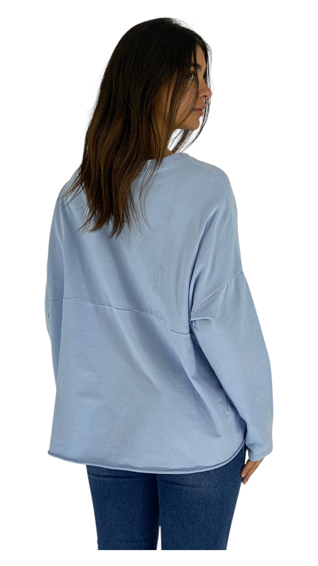This light blue long-sleeved shirt is a simple yet stylish piece, perfect for casual wear. It features a pocket on the left side, adding a functional element to its design. The soft blue color is refreshing and versatile, making it easy to pair with various bottoms, such as blue jeans. The long sleeves provide a comfortable fit, making it suitable for different weather conditions.