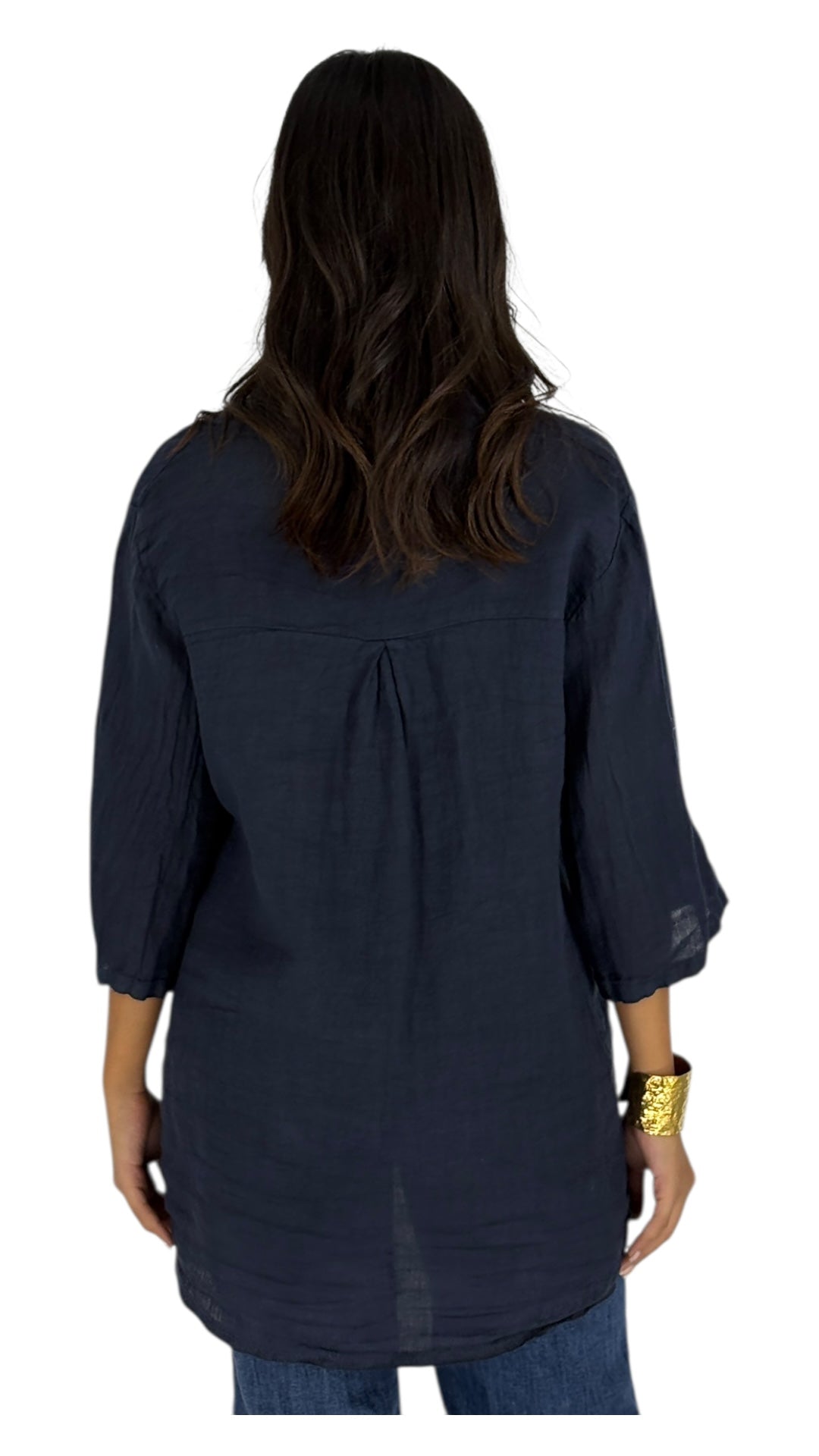 This linen shirt is a must-have for your wardrobe. Made from lightweight and breathable linen, it offers a relaxed fit and a comfortable feel. Its classic design features a button-down front and three-quarter sleeves, making it a versatile piece for any occasion. The natural texture of the linen adds a touch of casual elegance. Dress it up or down – this shirt is a timeless staple.
