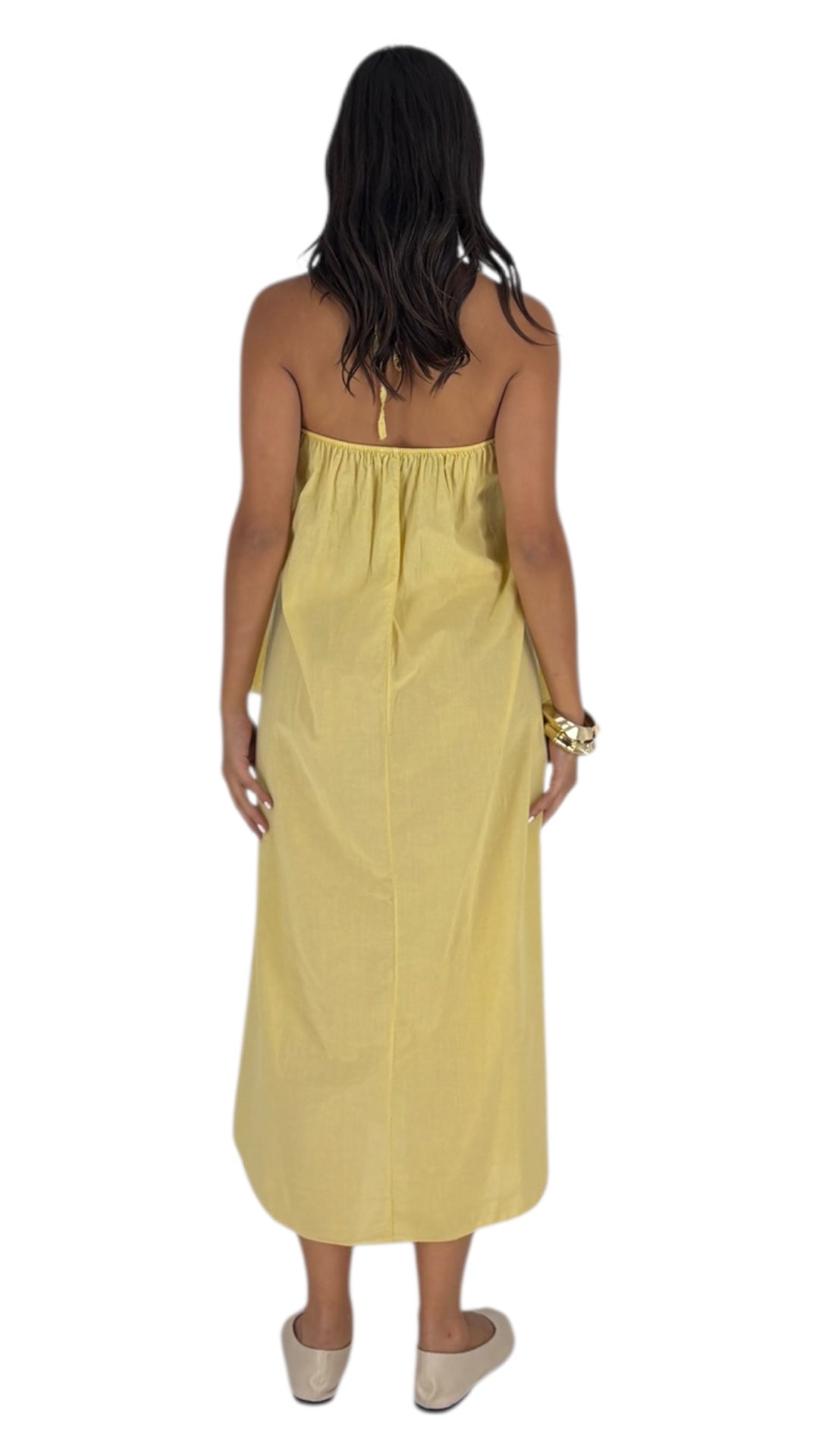 This stunning gown features a flowing, tiered silhouette that drapes beautifully. The halter neckline adds a touch of elegance, while the carefully constructed layers create a captivating texture. The dress is paired with shoes that provide a striking contrast, making it a perfect choice for a special occasion. This dress is designed to make a statement.