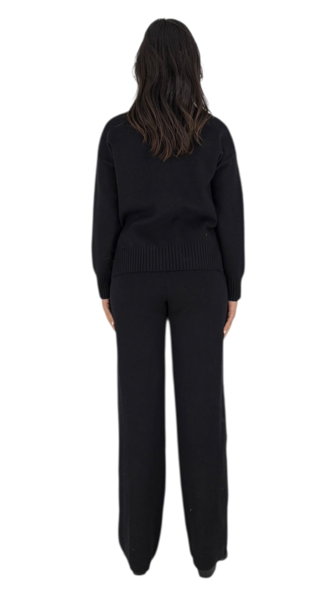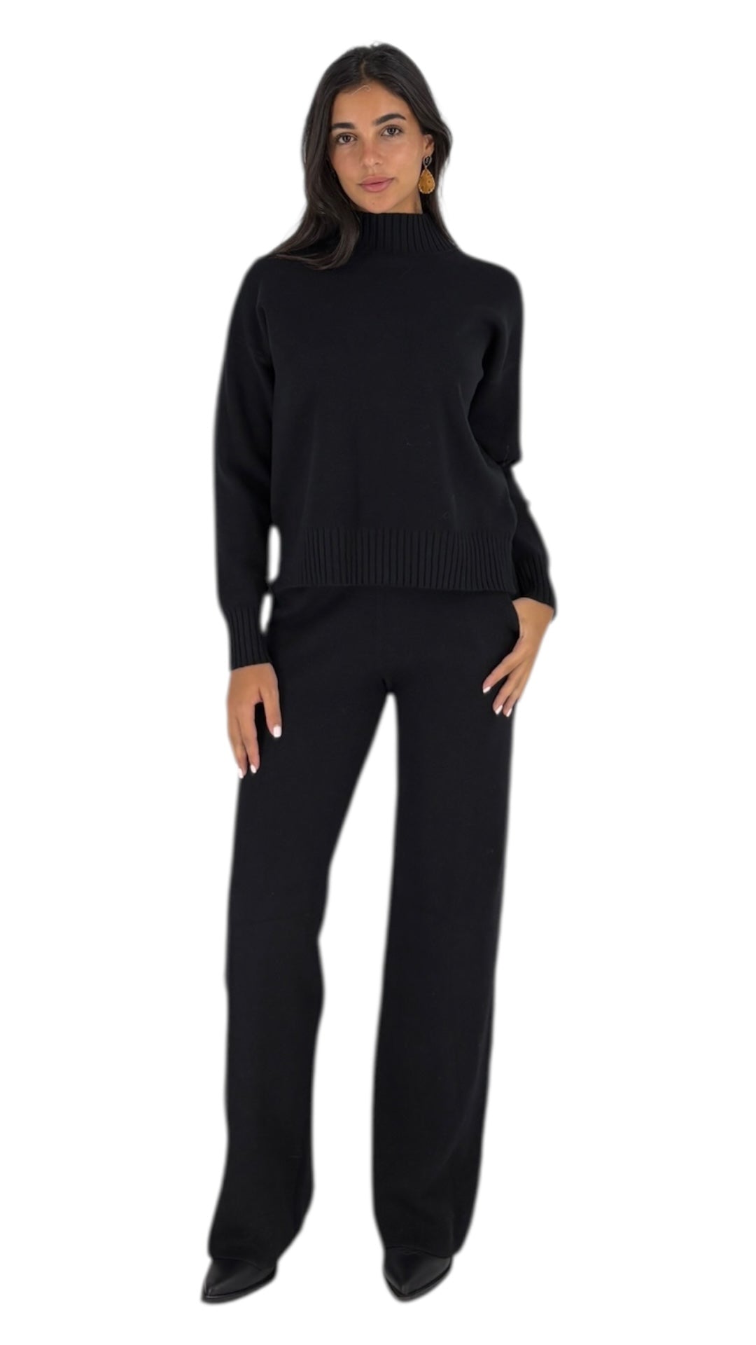Effortless Elegance Set. Embrace timeless style with our black turtleneck sweater and wide-leg pants set. Crafted from a soft, high-quality fabric, this ensemble offers both comfort and sophistication. The sleek silhouette and minimalist design make it a versatile choice for any occasion, from work to weekend. Elevate your wardrobe with this essential, effortlessly chic set.