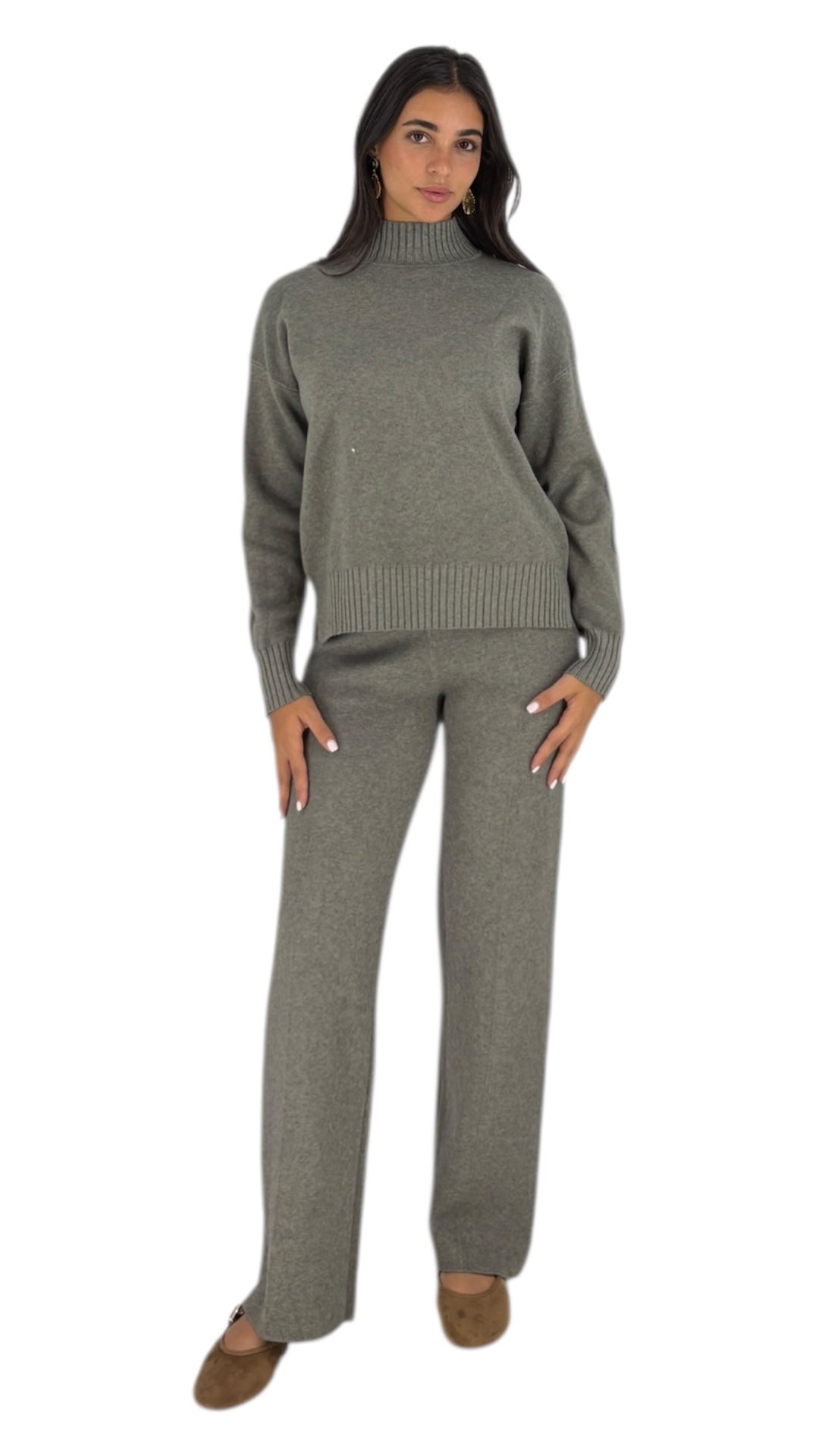 Effortless Elegance Set. Embrace timeless style with our black turtleneck sweater and wide-leg pants set. Crafted from a soft, high-quality fabric, this ensemble offers both comfort and sophistication. The sleek silhouette and minimalist design make it a versatile choice for any occasion, from work to weekend. Elevate your wardrobe with this essential, effortlessly chic set.