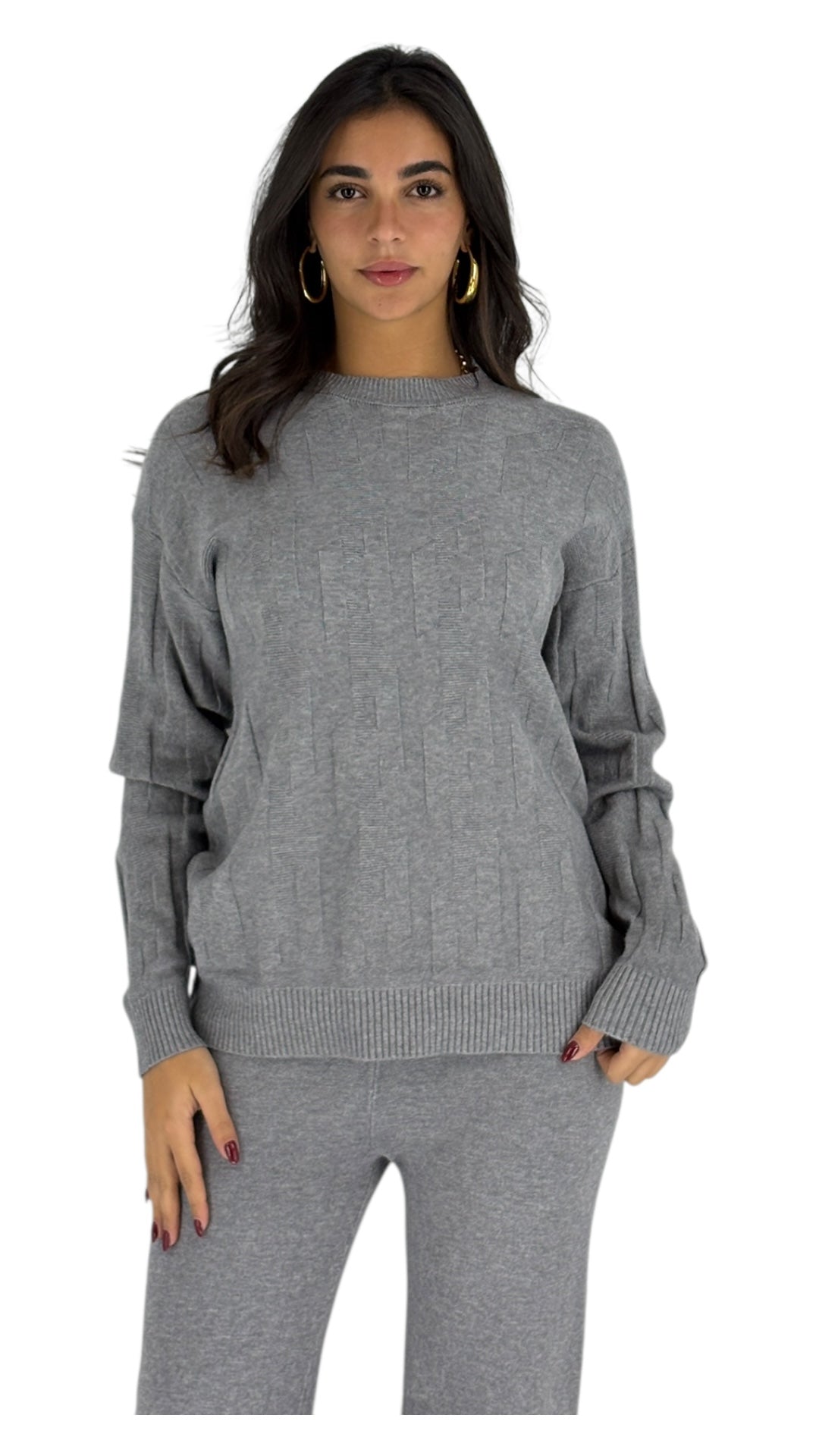 Step into comfort and style with our exquisite knit set. This ensemble features a luxuriously soft, grey knit sweater and matching pants, designed for a sleek, streamlined silhouette. The minimalist design is perfect for creating a versatile wardrobe, easily dressed up or down. The sweater's classic cut and the pants' flattering fit offer a sophisticated look for any occasion.