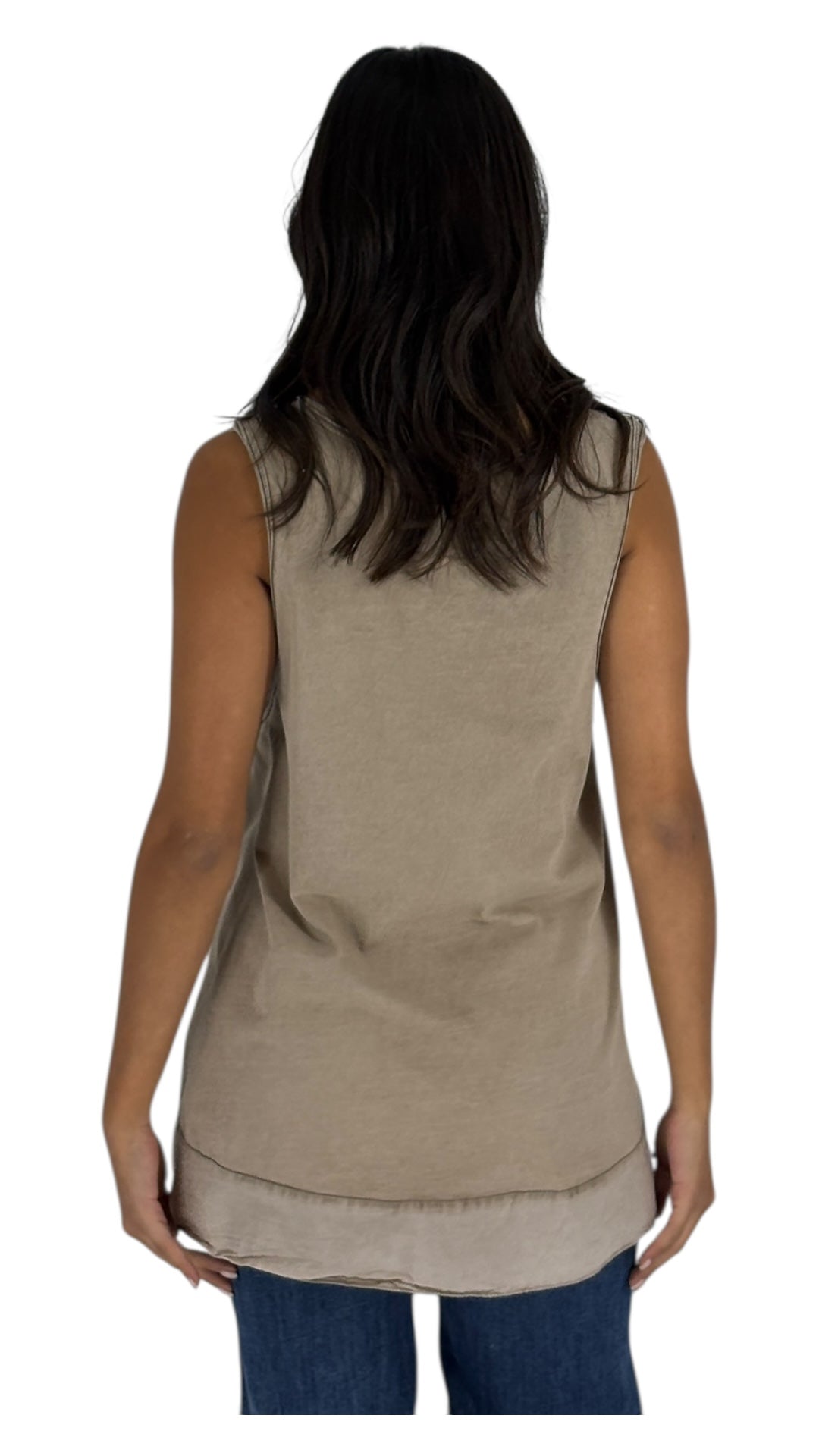 Embrace timeless style with this essential taupe sleeveless top. This top offers a streamlined silhouette, perfect for creating versatile and chic looks. The classic black color makes it easy to pair with any bottoms, while the sleeveless design adds a modern touch.